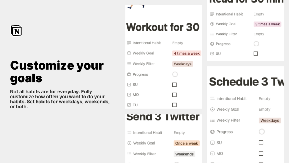 Set recurrent weekly habits, customizing them based on your preferences and lifestyle.