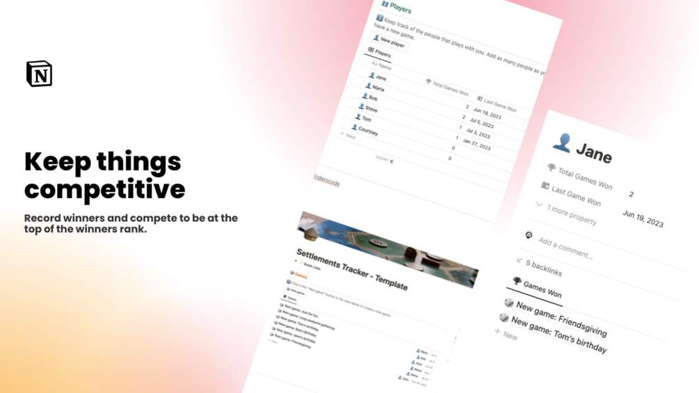 The Settlements Tracker is the ideal companion for Catan players who want to enhance their gaming experience. Say goodbye to pen and paper and embrace the convenience of digital tracking with our Notion template.